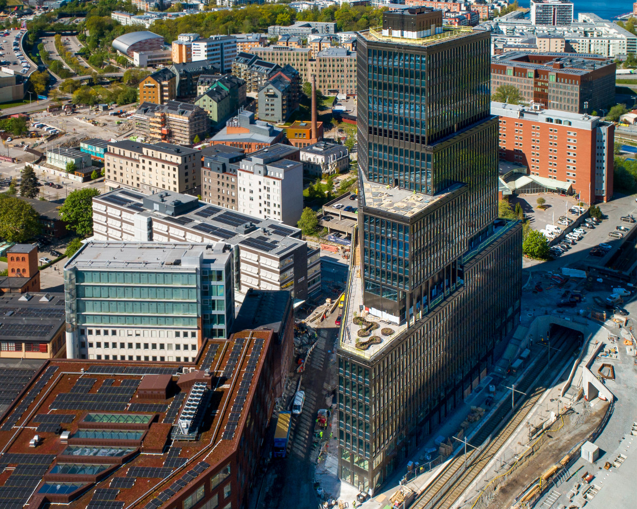 The new landmark high-rise Sickla Central in Stockholm stands out with its dynamic geometry - revealing a unique profile from every viewpoint.