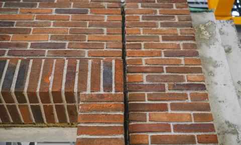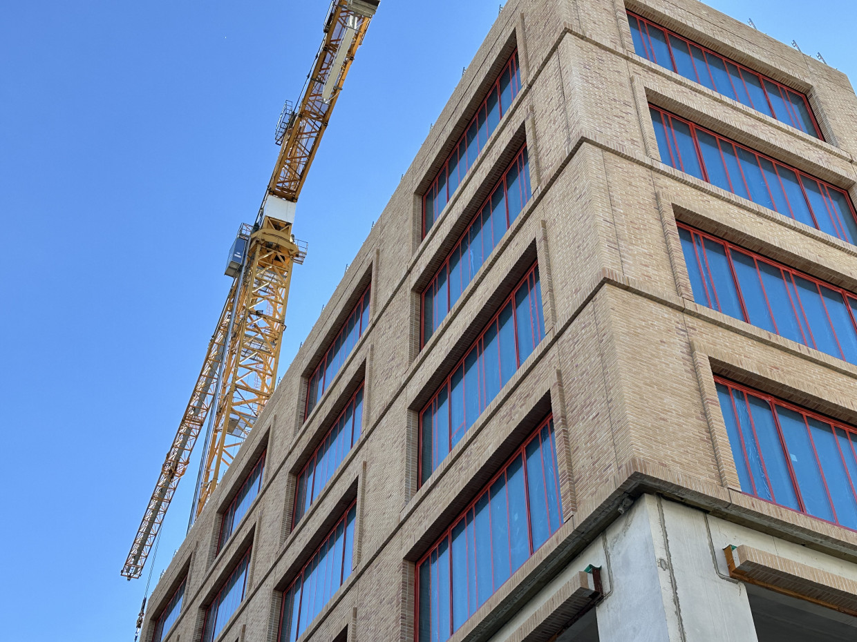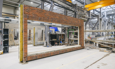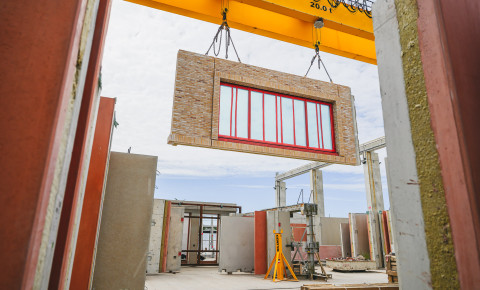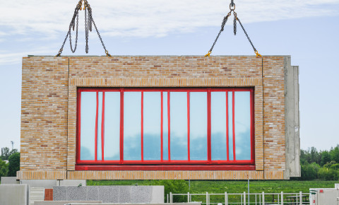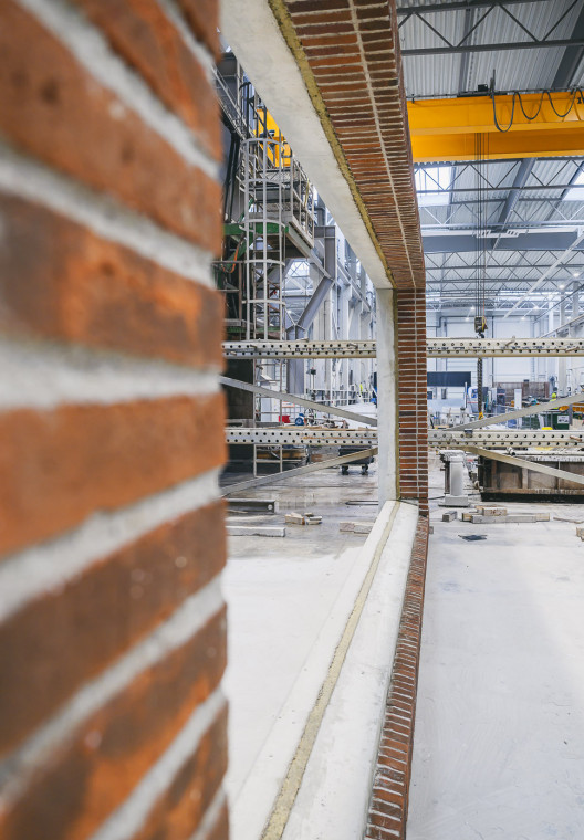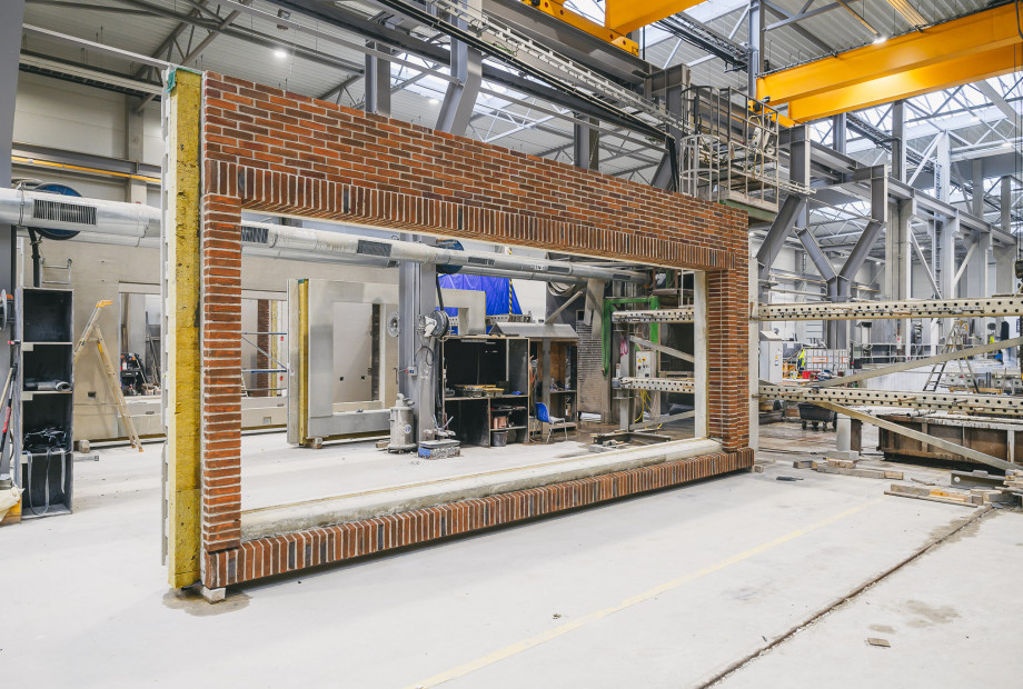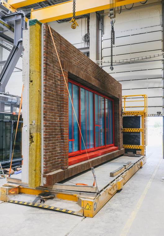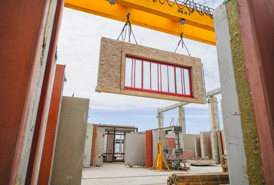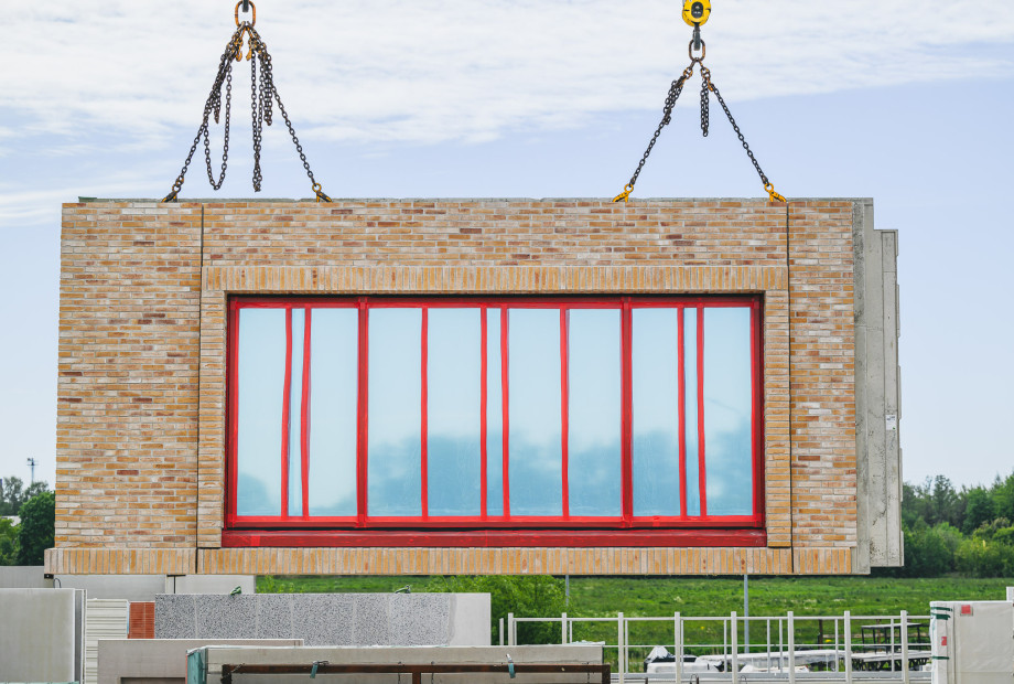 The load-bearing façade elements are an essential part of the building structure. They consist of insulated sandwich wall panels with brick finish in five different tones, and massive windows - all pre-installed at our precast facility. The average element length is nine meters.