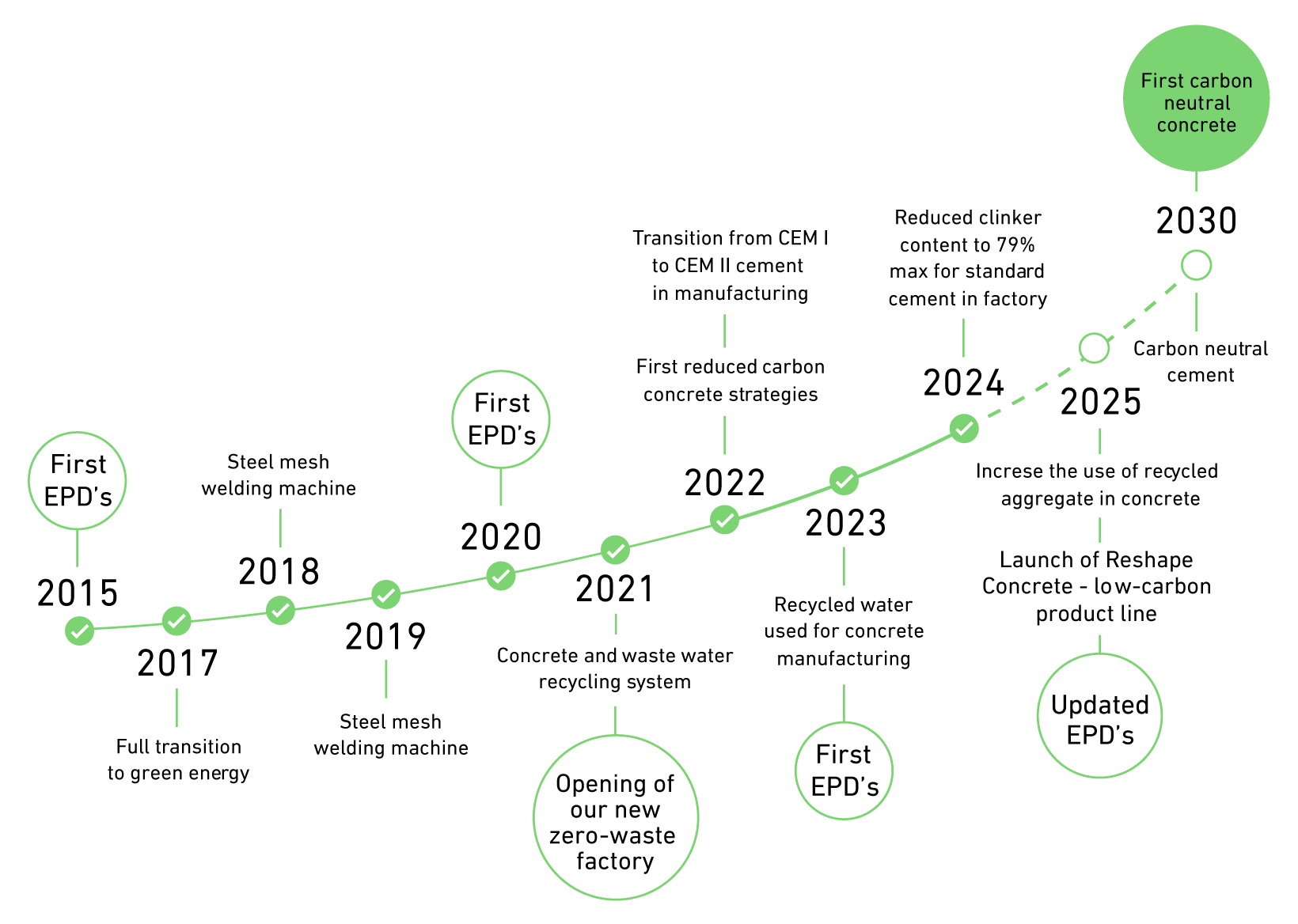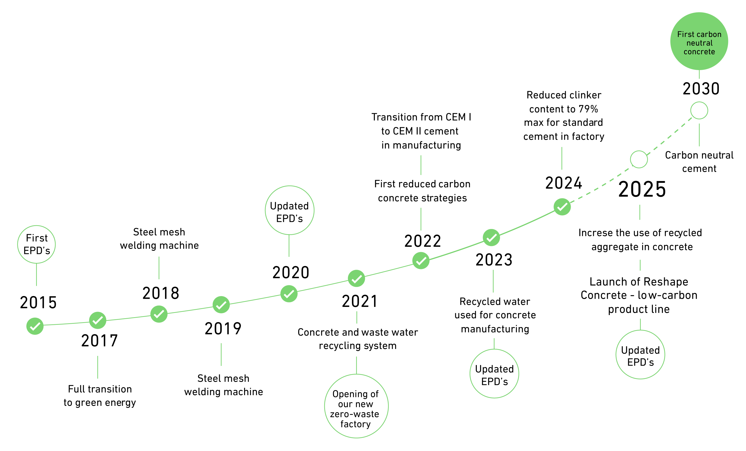 CO₂ reductions are achieved through actual changes in our facility and the way how we produce concrete — no offsets, just results.
