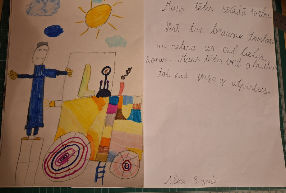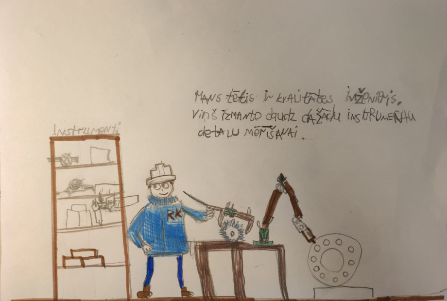 "Mans tētis ir būvkonstrukciju inženieris. Viņš strādā MB Betons. Tētis rēķina drošas konstrukcijas. Viņš ir gudrs, jautrs un mīļš. Es ar tēti ļoti lepojos. "