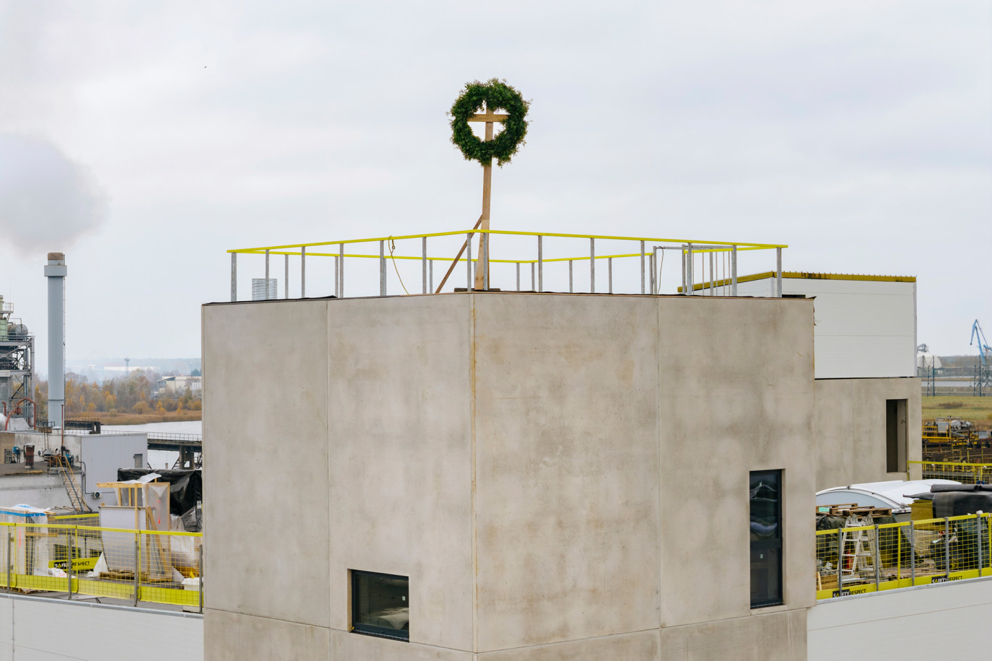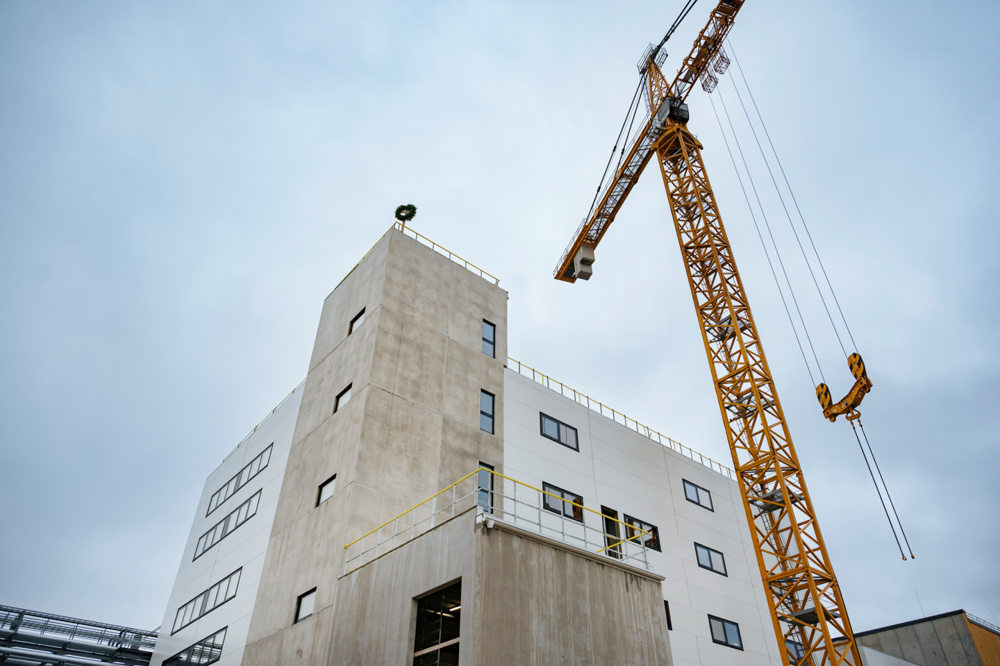 Lielākā daļa konstruktīvo darbu objektā jau paveikta – izbūvētas nesošās konstrukcijas, ārējie inženiertīkli un uzstādītas galvenās tehnoloģiskās iekārtas.
