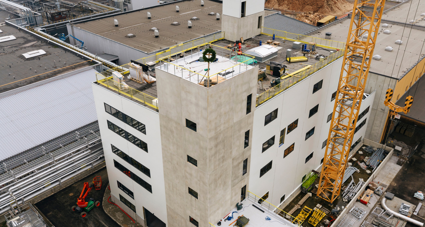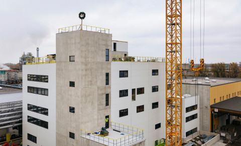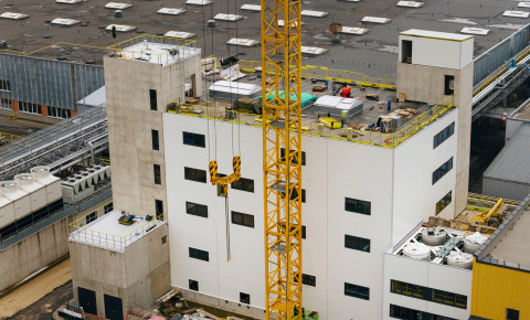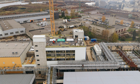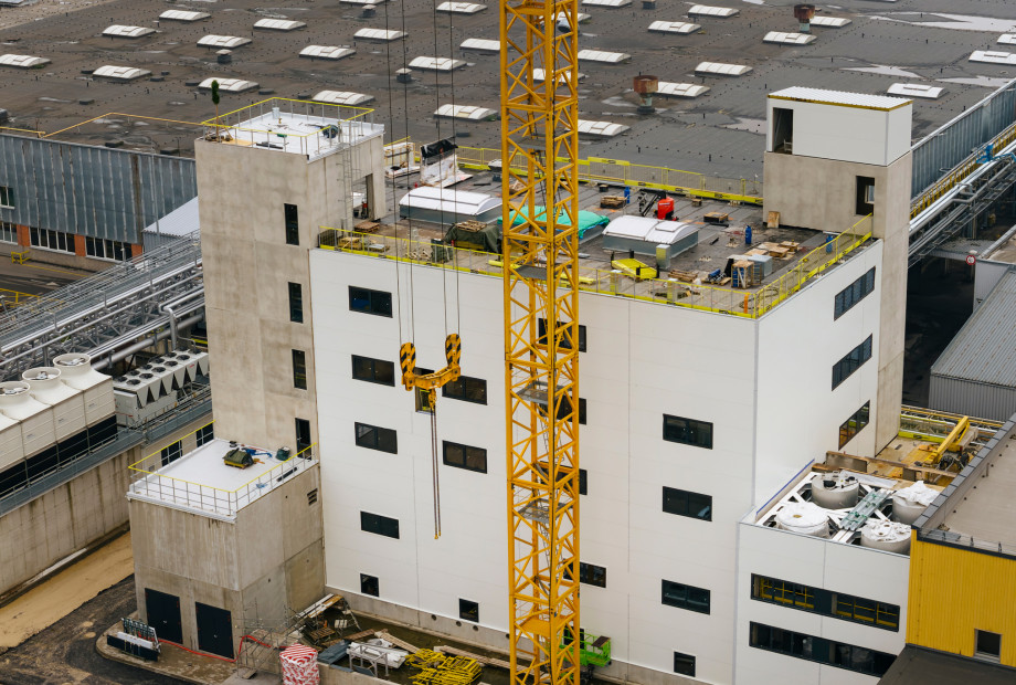 Lielākā daļa konstruktīvo darbu objektā jau paveikta – izbūvētas nesošās konstrukcijas, ārējie inženiertīkli un uzstādītas galvenās tehnoloģiskās iekārtas.